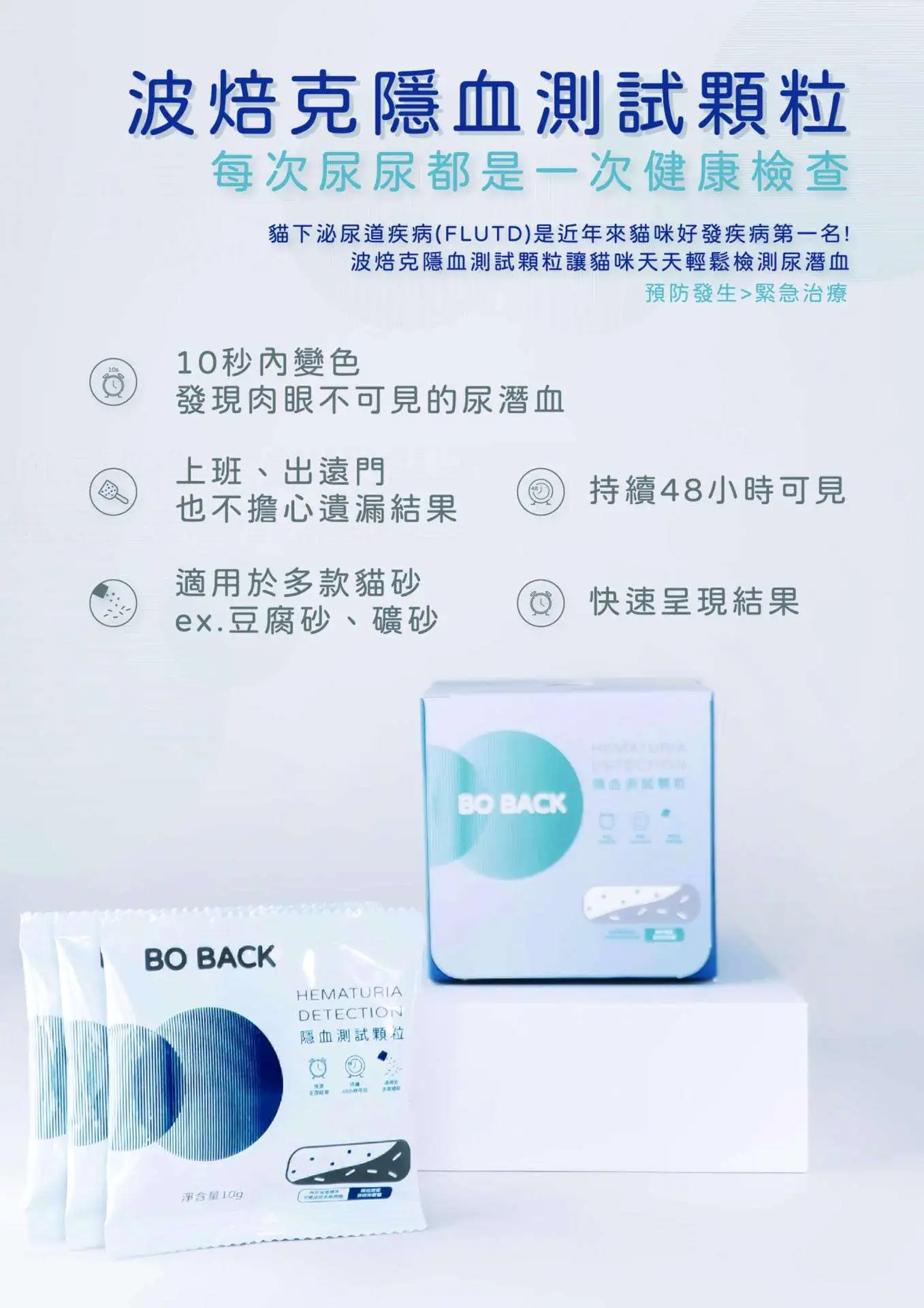 貓下泌尿道疾病(FLUTD)是近年來貓咪好發疾病第一名!波焙克隱血測試顆粒讓貓咪天天輕鬆檢測尿潛血